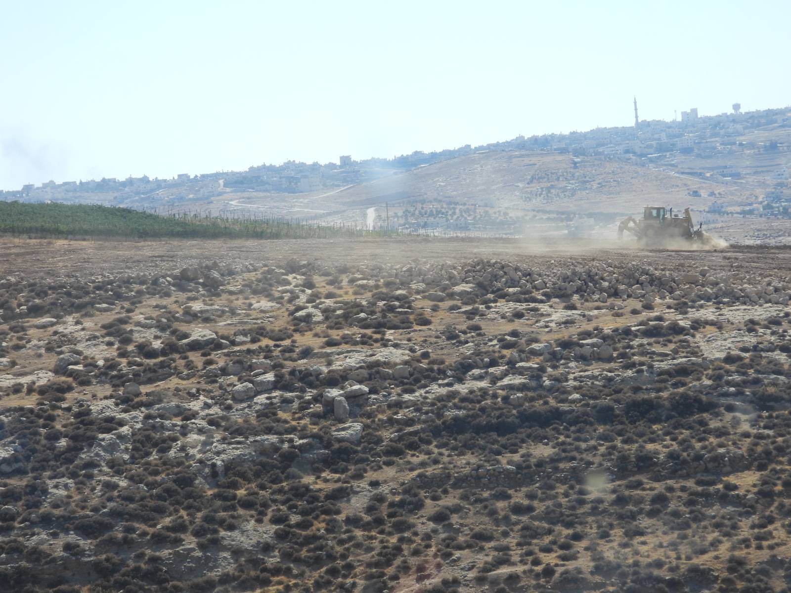In the morning, a bulldozer working for settlers flattened land belonging to the village of Jawawiya. The work is taking place right next to the vast area already allocated to Yissakhar Man — at the expense of Jawawiya’s grazing lands — where a vineyard was planted over two years ago. As far as we know, the work is illegal even under Israeli law, and certainly under international law.
