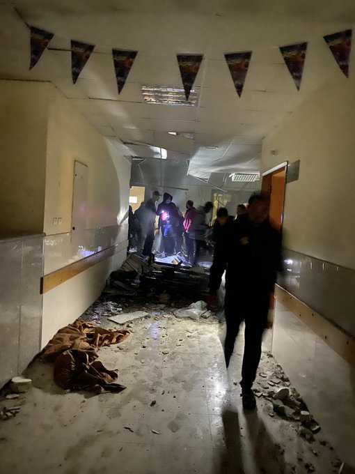 A doctor working at the hospital confirmed that the in-patient surgical ward was directly hit. The hospital director announced that the surgery ward is completely out of service as a result of the strike which caused significant damage to the walls and ceiling.