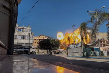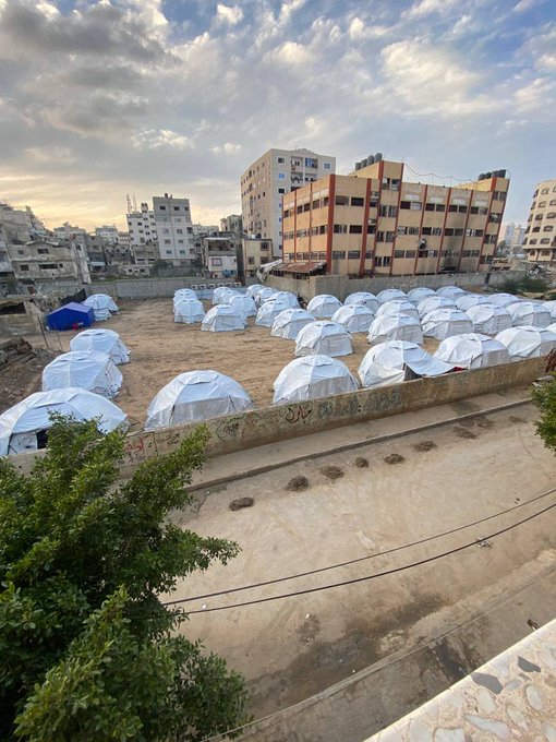 Early afternoon, an Israeli airstrike targeted the Al-Israa camp for displaced Palestinians, located next to Al-Israa Tower and Al-Mostaqbal Model Private School, on Omar Al-Mukhtar Street, Gaza City.