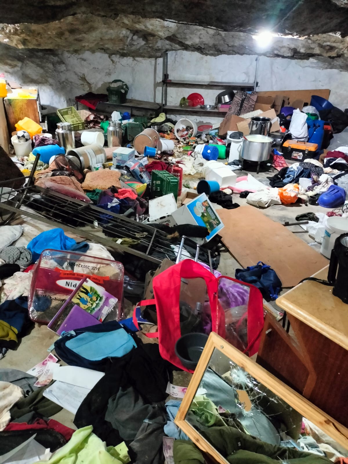 At the same time, the army returned and invaded Jinaba to finish breaking and destroying what the settlers had failed to do., around 2 a.m.. Then, the soldiers, present for more than seven hours, spilled the residents' food, emptied the cupboards, tore off the window bars, and arrested at least one resident. (According to @mistaclim)