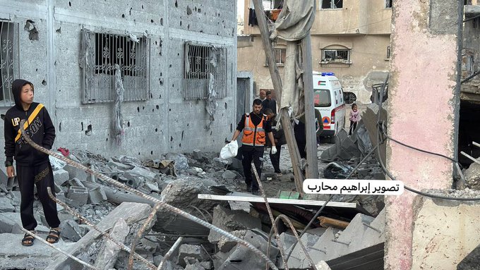Around 2:40 am, an Israeli airstrike targeted the house of the Abd al-Bari family near "Rafah Garage" in Khan Younis. Neighboring houses of the Qaoud and Abu Talib families were also impacted, leading to the killing of 13 people, including women and children.