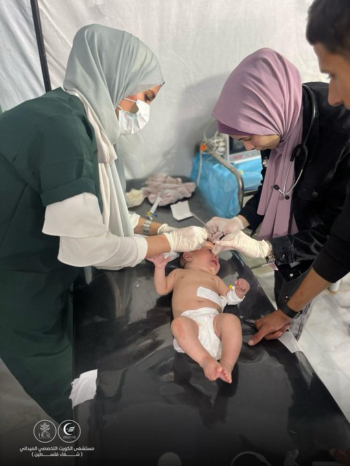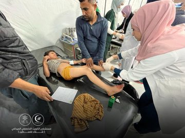 Around 10:30 am, an Israeli airstrike targeted people around dispalcement tents in the vicinity of the Kuwait Specialized field hospital in Khan Younis, killing three people and injuring a number of children.