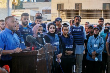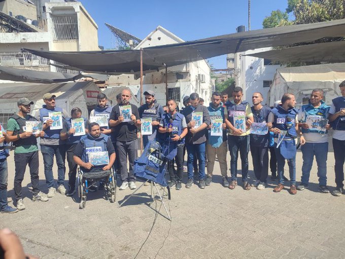Gaza journalists protest the murder of Ismail Alghoul and Rami al-Rifi