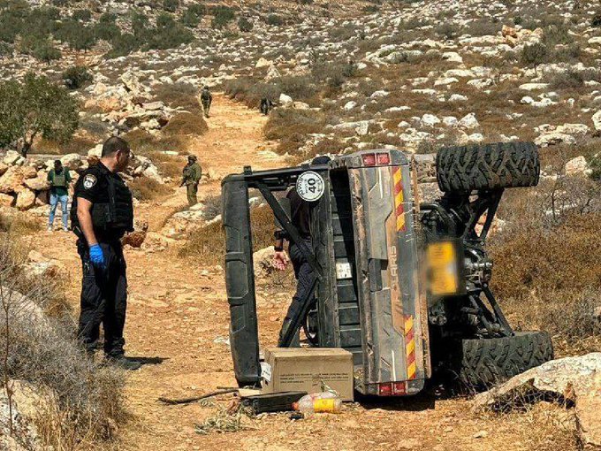 There is an escalation when the ATV of two Israeli settlers from the Gal Yosef farm illegal outpost was accidented near the Palestinian village of al-Mughayyir. They pretend that Palestinian opened fire and caused their vehicle to overturn before fleeing when his gun jammed. One shepherd was lightly injured in the head and evacuated to the hospital. A settler claimed he was shot and beaten in the Eastern Plains of Al-Mughayyir (land recently taken from Palestinian owners). This allegation appears to have been used as justification for escalating settler and military action against the Palestinian village.