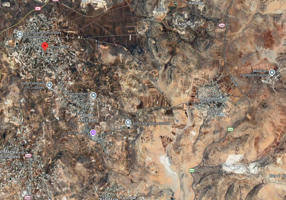On Augustus 16, Israeli settlers stormed the Marj Si’ah plain, located between Al-Mughayyir and Abu Falah. During this raid, settlers assaulted Palestinian residents and confronted locals after earlier attacks in the same area that resulted in the cutting down of olive trees belonging to Atef Hamayel the previous day. Israeli settlers torched Abdel Rahim Awad’s farm in Turmus Ayya. In the face of Jewish settlers' rampage, residents confront a massive attack on farmers' lands and property between Khirbet Abu Falah and Turmus Ayya, northeast of Ramallah. Two settlers were injured when residents confronted their attack in the Marj Sa'i area, between the towns of Abu Falah and Turmus Ayya, northeast of Ramallah.