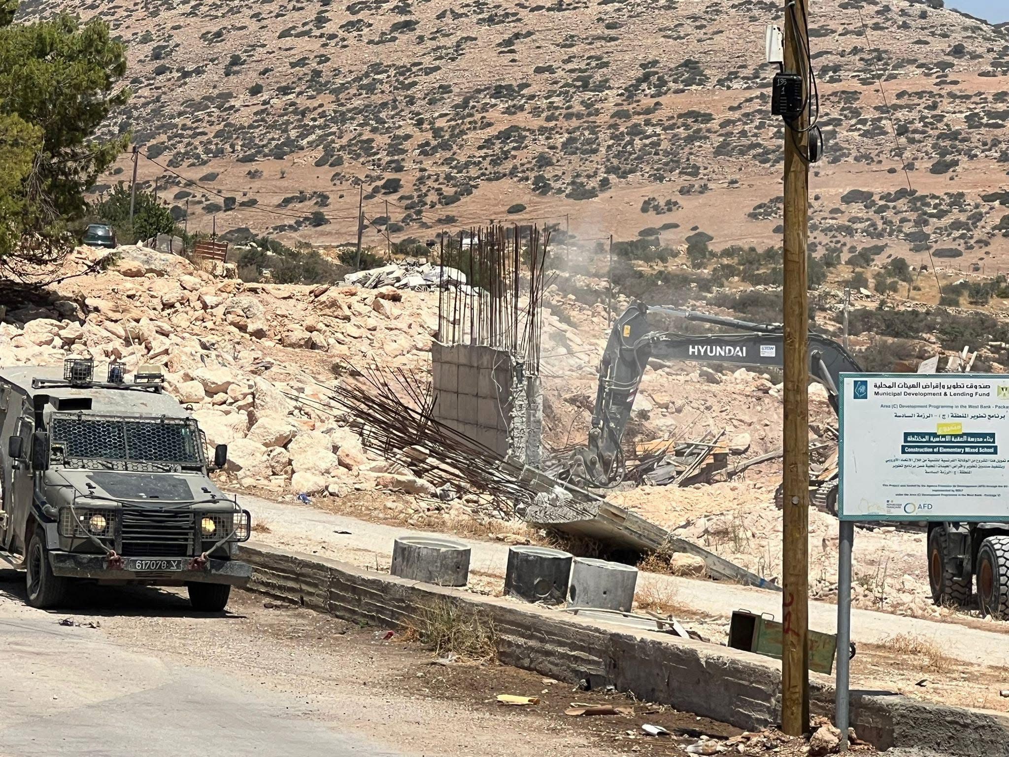 The occupation had issued a stop-work order against the school several months ago and had also seized heavy machinery that was being used at the site. Despite plans being submitted to the Civil Administration and assurances a court ruling would be awaited, the demolition proceeded on August 5.