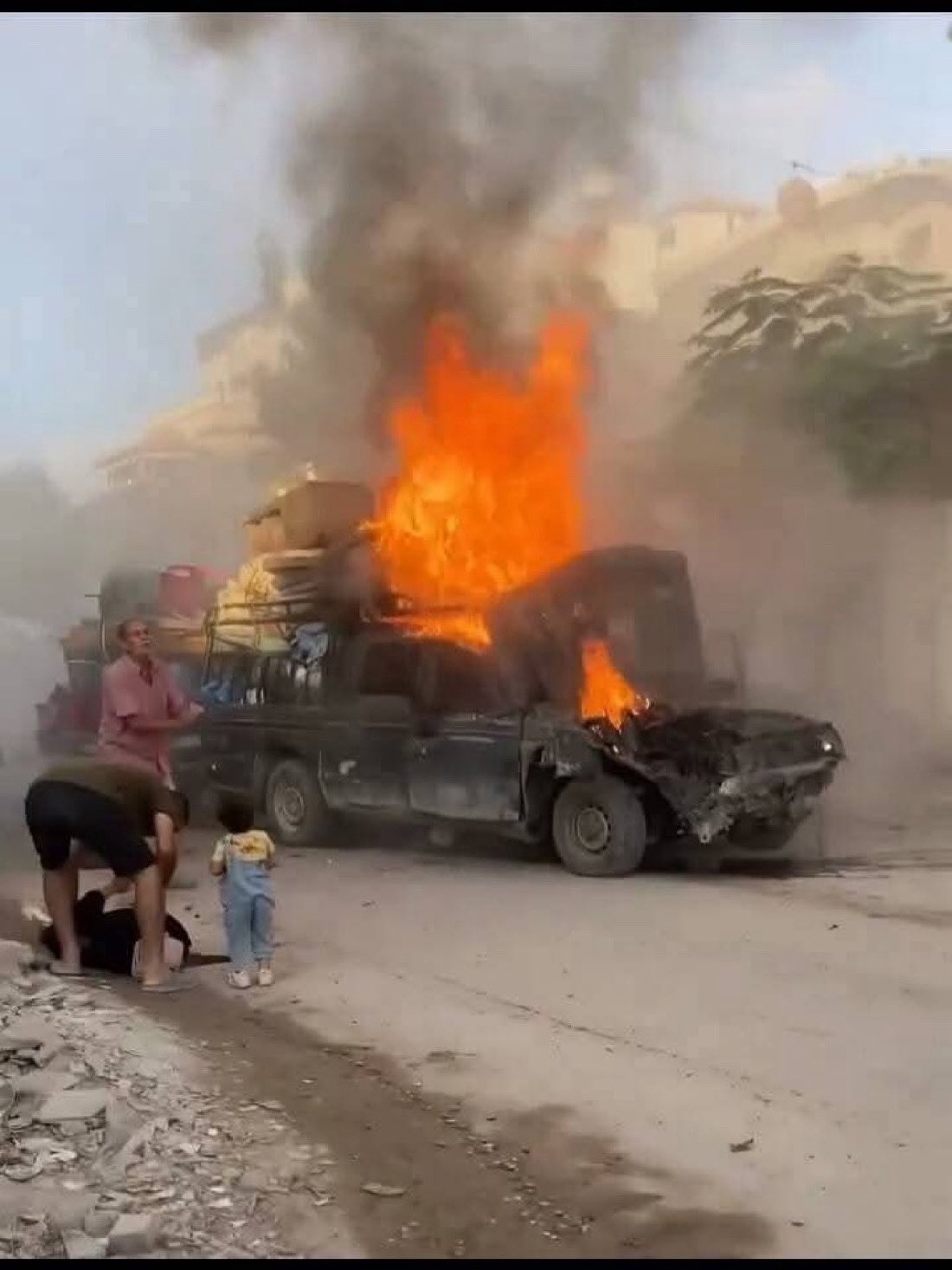Israel bombs vehicle and massacres displaced people from Gaza City