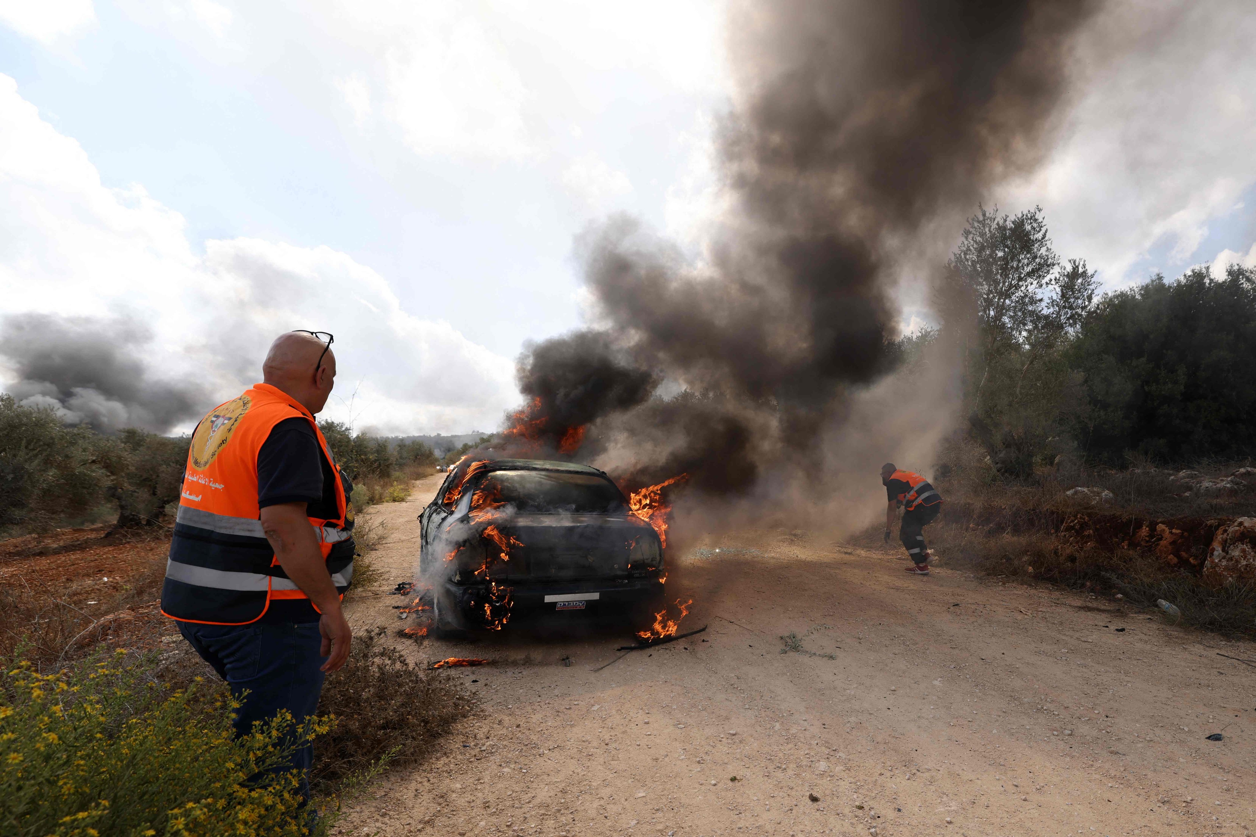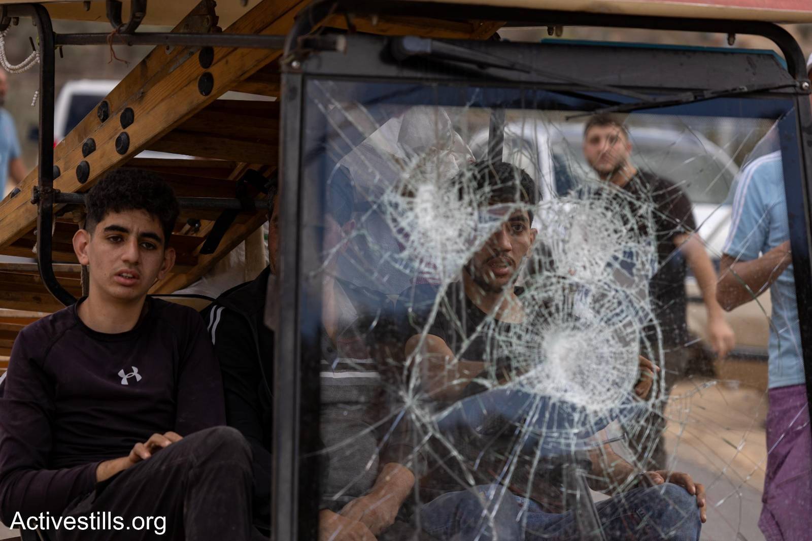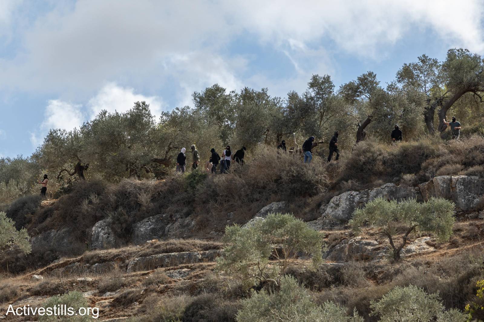 Suddenly,* “dozens of masked settlers descended upon the harvesters and attacked them with clubs and stones.”* A Palestinian Jeep was torched, and Ashtiyeh’s own car was also destroyed. As he fled, “they pelted him with stones,” and he was injured.