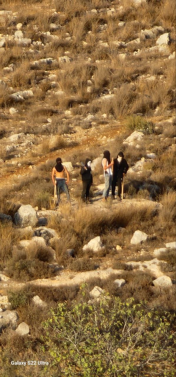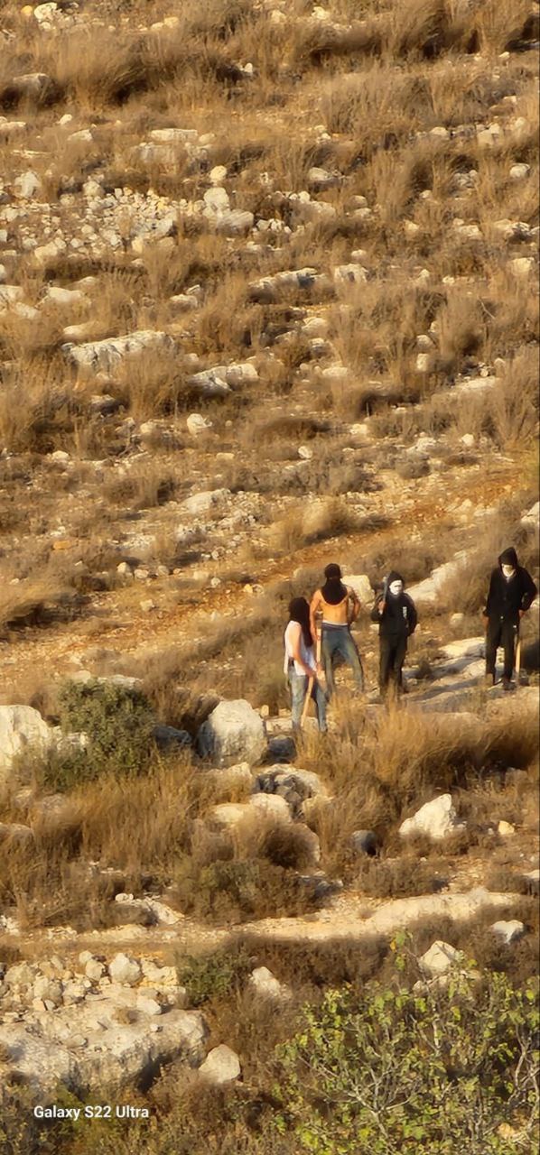 At the same time, in Aqraba, settlers targeted farmers looking after their olive fields and forced them off their lands, second time since last week; Settlers targeted also farmers looking after their olive fields and forced them off their land.