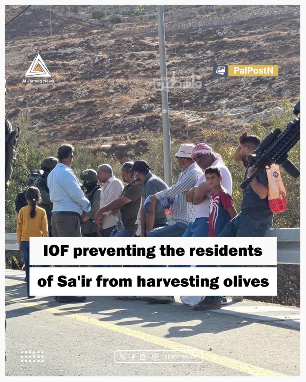 According to the Wall and Settlement Resistance Commission, its crews have documented a total of 158 attacks against olive pickers since the beginning of the current season, 17 carried out by Israeli army and 141 by settlers. Wadi Sa’ir in East Hebron witnessed the establishment of seven new settlement outposts, turning the area into a "closed military zone" and preventing farmers from accessing their lands and harvesting olives under threat of force. Despite prior official coordination, occupation forces expelled farmers and blocked journalists and foreign activists from reaching the area, hindering the harvest process. The lands suffered repeated attacks, with over 500 olive trees cut down, while settlers were allowed unrestricted access.