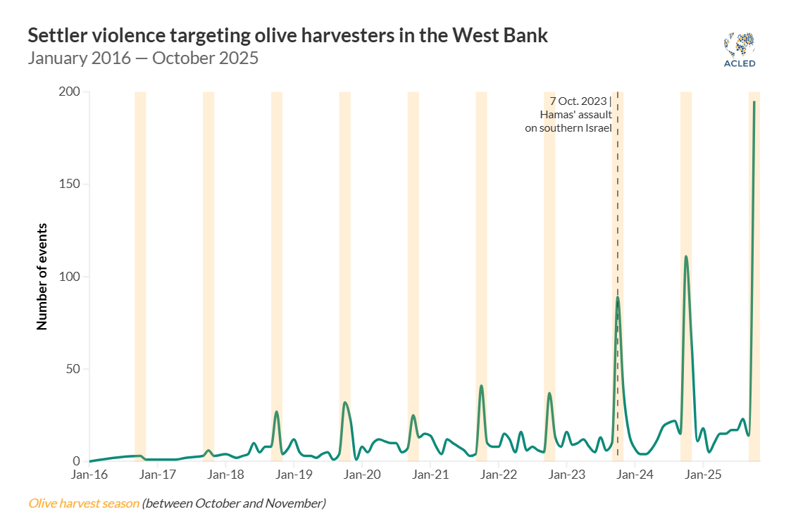 The olive harvest is culturally, economically, and socially vital for many Palestinian communities. However, the 2025 season is expected to be subject to heightened risks. These stem from a combination of settler violence, restrictions on land access, environmental factors (including pests and climate change), and governance/policy issues.