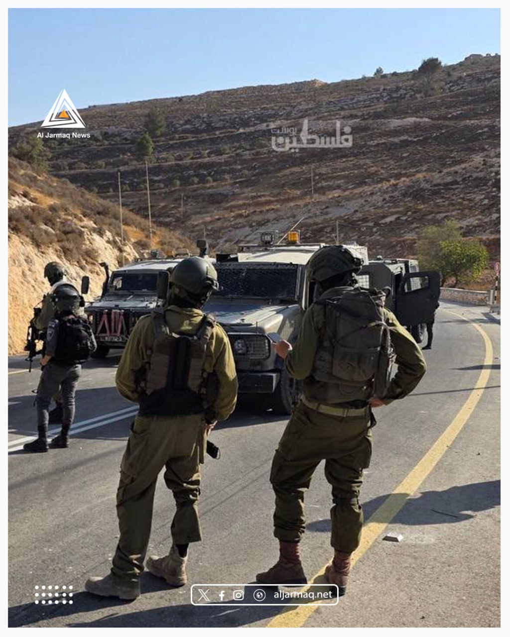 Israeli soldiers backed Israeli settlers in raiding the lands of Kobar village, north of Ramallah. They assaulte farmers during olive harvesting, arrested several residents, and seized their vehicles