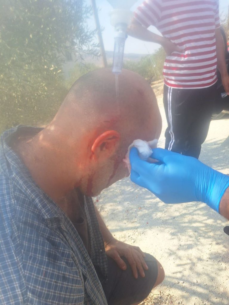 On Saturday, November 8, Masked Israeli settlers armed with clubs attacked Palestinian farmers and solidarity activists, with many hospitalized after, in the Jabal Qamas area of Beita, south of Nablus, near the recently established Mevaser Shalom outpost, built on Beita’s confiscated land. After a few hours of successful olive harvest, a group of around 50 settlers, masked and armed with clubs and sticks, descended on the harvesters from the hillside, hurling rocks at them. The assault left 14 people injured and in need of medical attention, including several Palestinian farmers, 3 medical personnel, two of whom suffering head injuries, 4 journalists, and 3 solidarity activists – one of them a US citizen, all of them sustaining head wounds. Reuters journalist Raneen Sawafta was bludgeoned and stoned, even after she had fallen to the ground. Settlers attacked anyone who tried to help her. One solidarity activist suffered a broken cheekbone and jaw. When he reached the Beita clinic before being transferred to an hospital, his shirt was soaked in blood and his head was split open. Despite the Israeli Occupation Forces claimed they had deployed soldiers to the scene to “disperse the confrontation”, eyewitnesses confirm that no Israeli military or police were present where the attack took place.