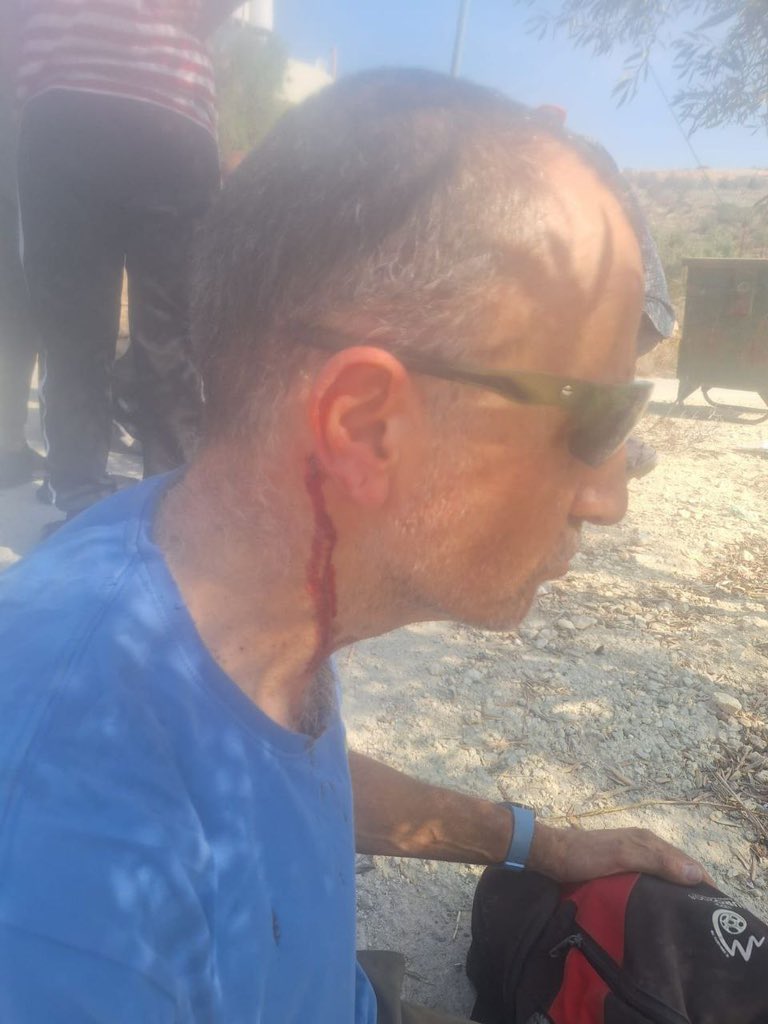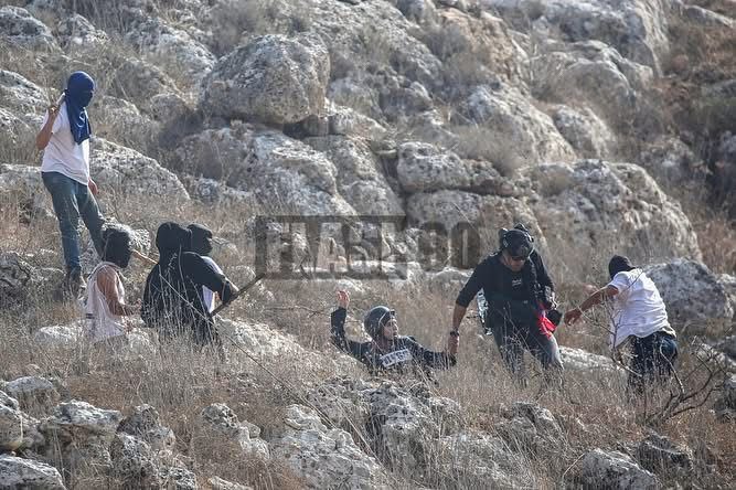 International activists and journalists were severely injured after the settlers attacked the olive harvesters and activist protected them on Qamas mountain in the town of Beita, south of Nablus in the West Bank. The assault targeted both Palestinians and those standing with them defending their land from ongoing colonial settlement expansion.