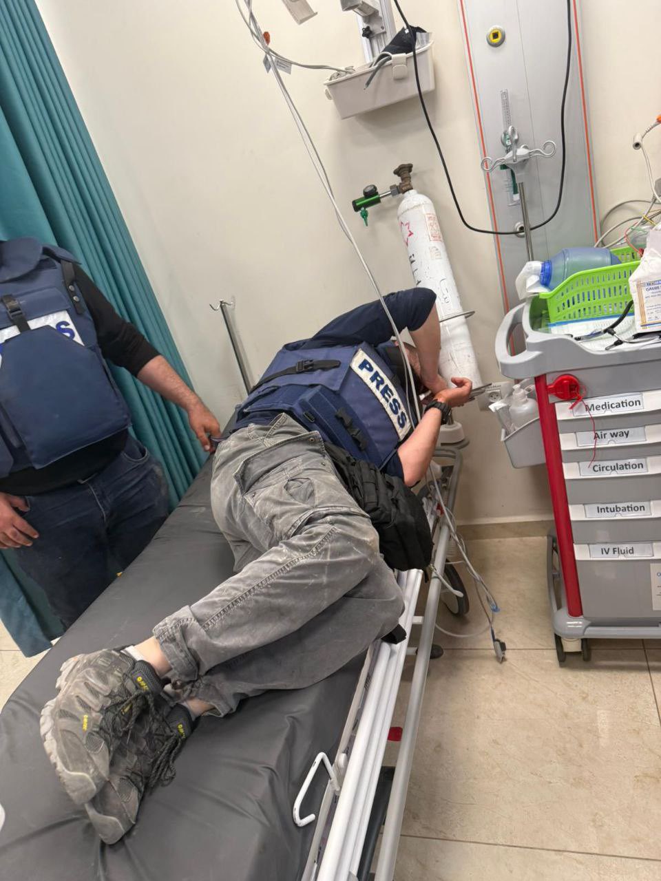 Cameraman Nael Buital, was also injured: his leg was broken and he was transferred to Al-Istshari hospital.
