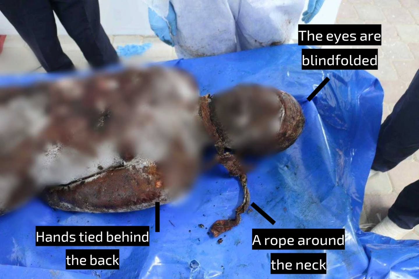 A forensic doctor confirmed that 120 bodies were received, only six of which have been identified. He described the condition of most of the remains as catastrophic, citing numerous examples of torture and execution among detainees. For instance, body number H32 NMC 14/10/2025 showed clear signs of execution by hanging after being tied and blindfolded, with evident torture marks on the body. Other corpses showed severe burns and plastic restraints on the wrists and ankles. The doctor said, “I have never seen such scenes before, even after years of experience in this field.”