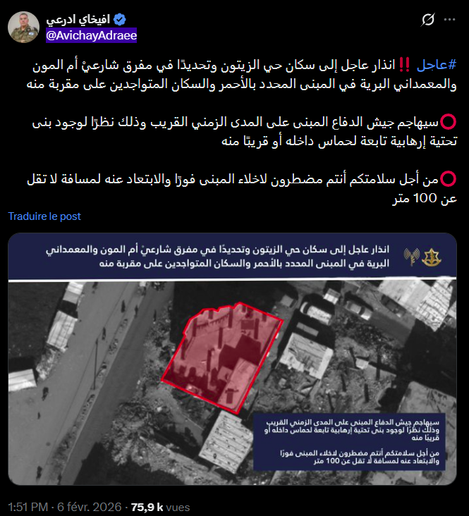 English translation of the @AvichayAdraee evacuation order: