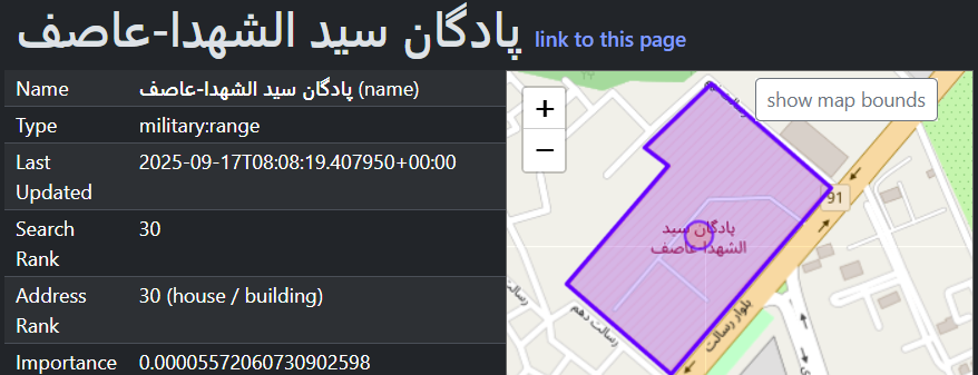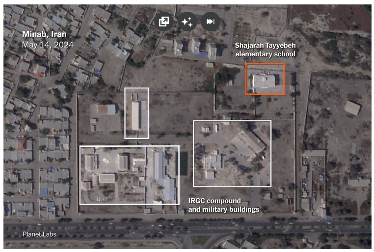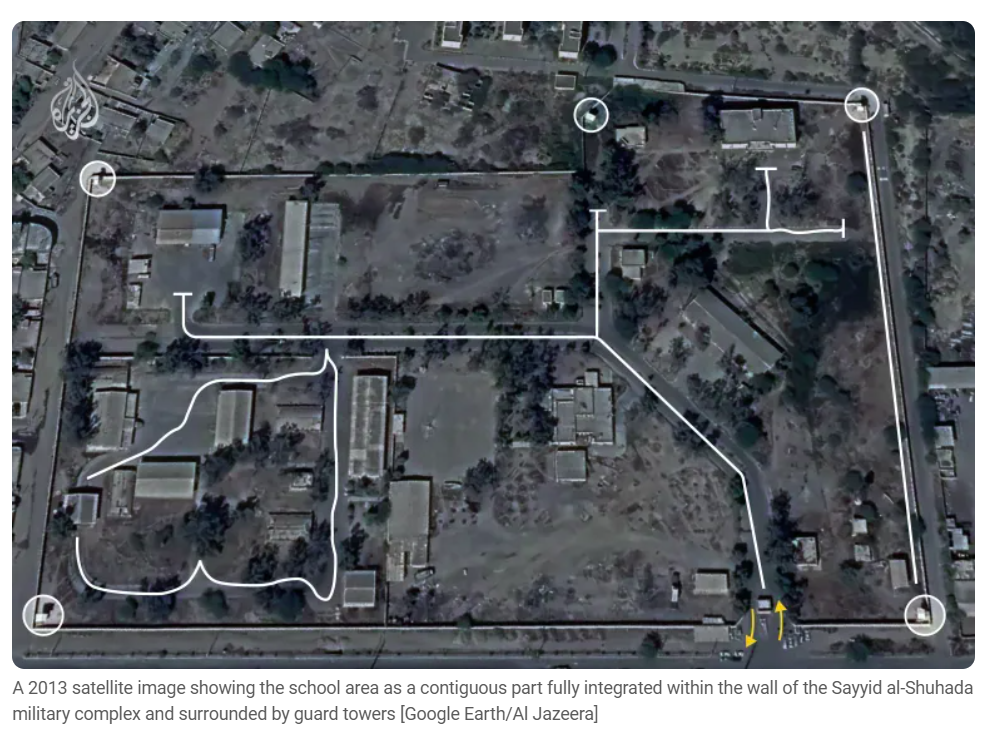 The school appears to be adjacent (600m) to a Revolutionary Guards barracks. This proximity is used in the pro-Isreaeli propaganda to explained the airstrikes.