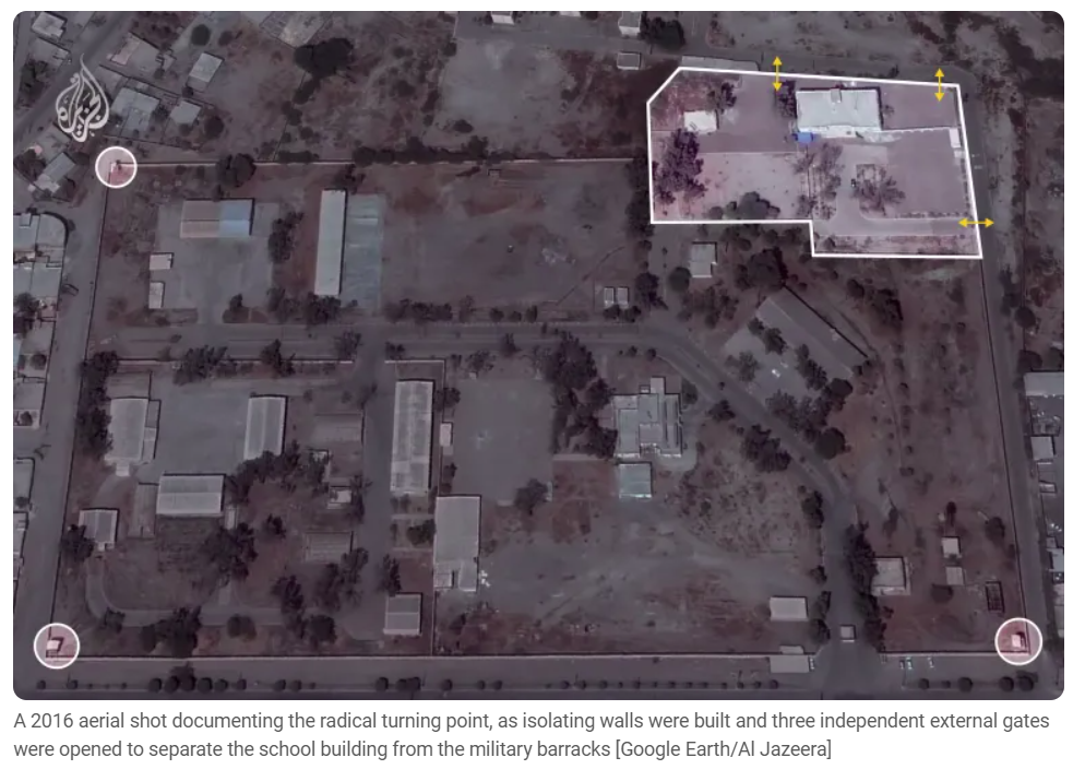 The school had been physically separated from the adjacent military complex since 2016. It had an independent walls, several civilian entrances, playgrounds and school facilities. It functioned as a civilian primary school for at least 10 years. Under international humanitarian law, it therefore remained a protected civilian site, even though many students were children of military personnel.