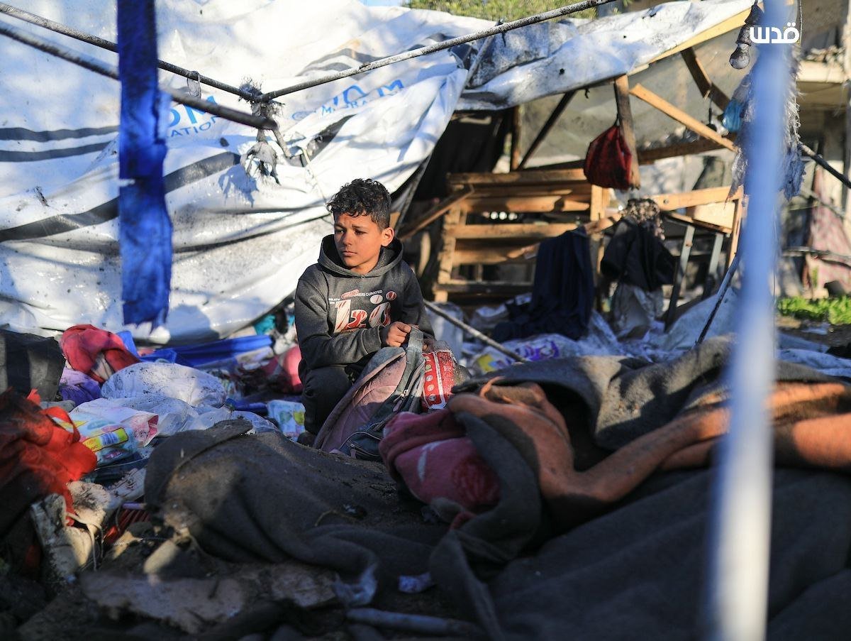 The shelling also injured several other people inside their tents in Abu Shammas Displacement Camp, in addition to causing severe damage to tents in the same location.