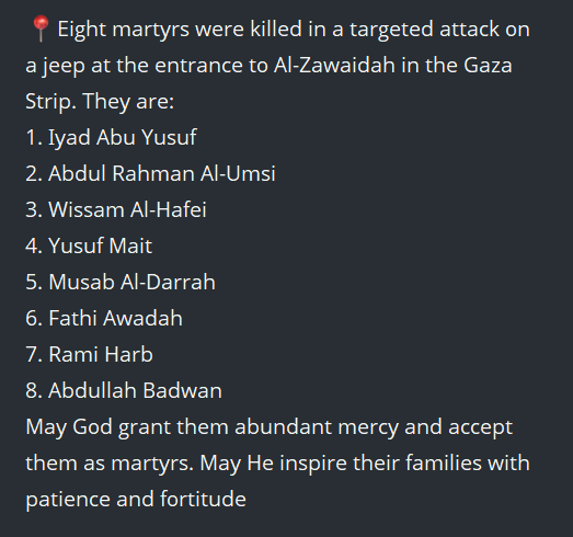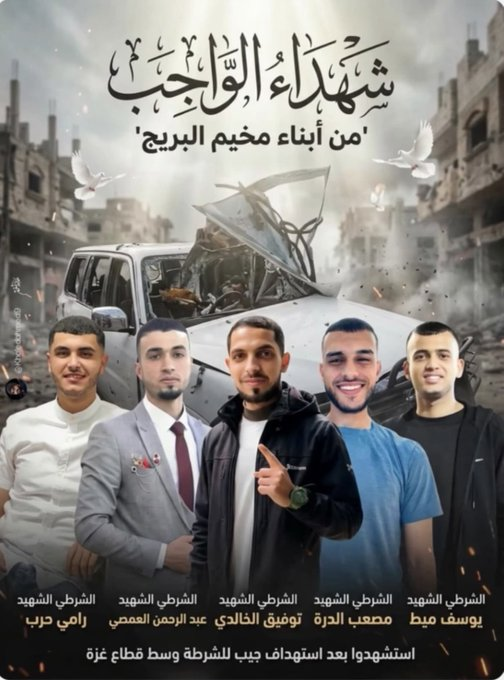 8 policemen were martyred as a result of Israeli forces targeting their vehicle on Salah al-Din Street in the Gaza Strip.